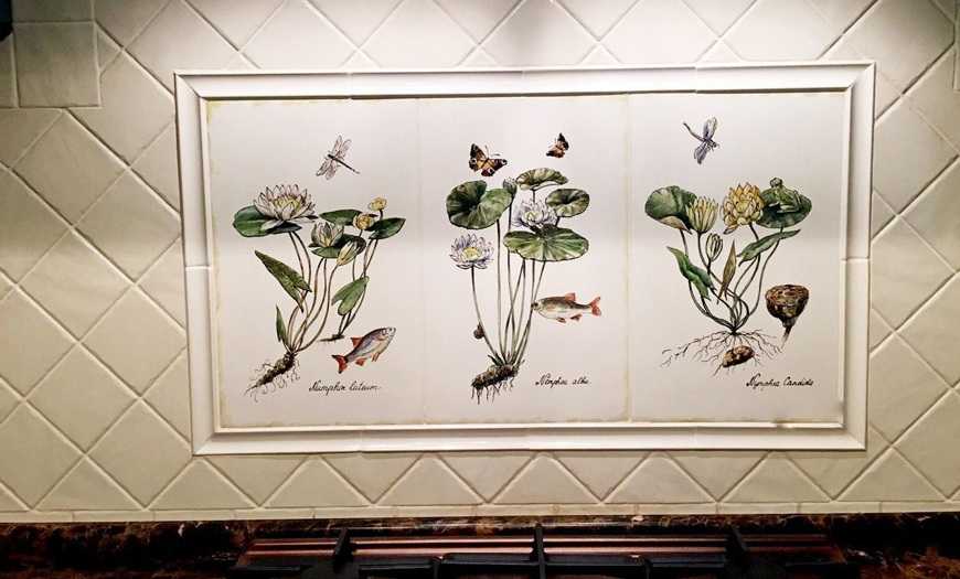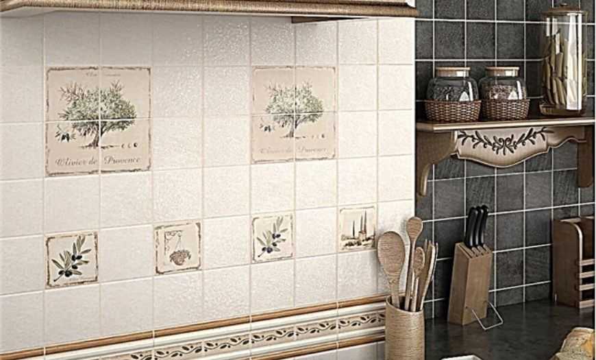 Плитка может имитировать не только натуральный камень, но и дерево. Такая отделка уместна в интерьере деревенского стиля — прованса или кантри. Провинциальный дизайн дополняют соответствующими узорами или панно с сюжетом на тему сельской жизни.