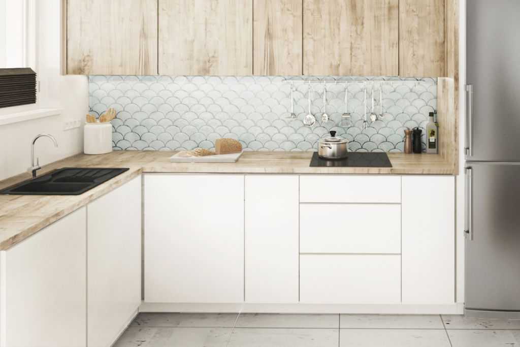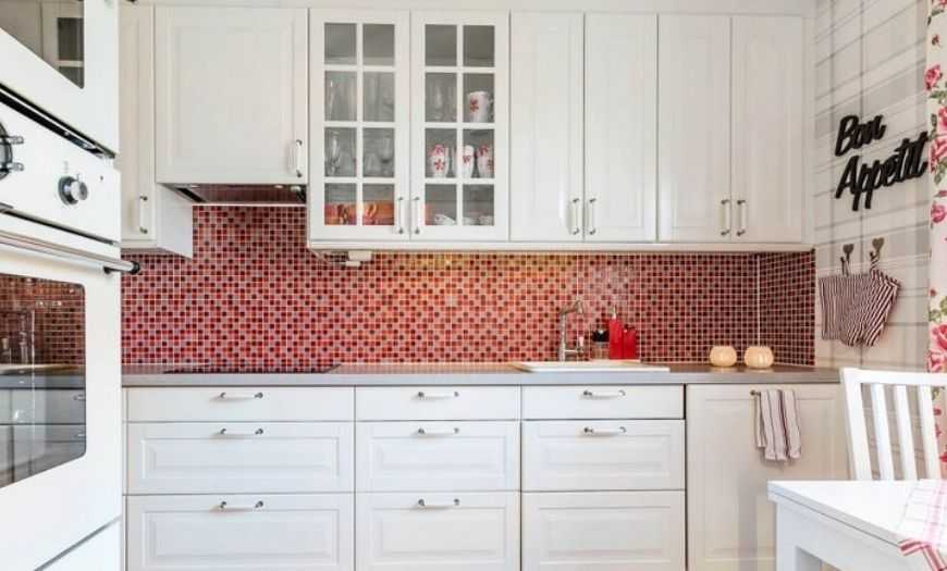 - На небольших кухнях не используйте большие плитки, которые визуально уменьшат комнату; в небольших помещениях лучше всего выглядят маленькие или квадратные плитки; чтобы оптически увеличить комнату, стоит использовать стеклянную плитку или зеркальную плитку в кафеле; мозаичная также подойдет для маленькой кухни;