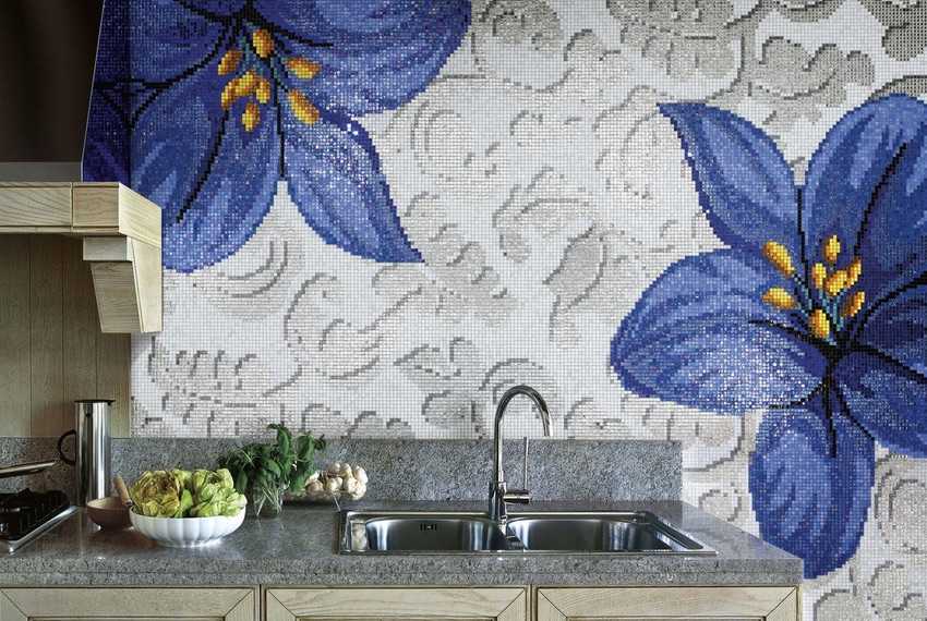 Обычно термин употребляют в отношении панно, выкладываемых из плиток самого малого размера. Вариаций на эту тему придумано множество. Сегодня в продаже есть разноцветная мозаика в виде квадратов, которыми можно выложить любую поверхность (в том числе криволинейную). Более дорогой вариант – индивидуальное панно, которое соберет мастер на стене. Учитывая высокую стоимость материала и его монтажа, чаще всего мозаикой оформляют только зону фартука, но при желании можно заполнить ею все свободные части стен.