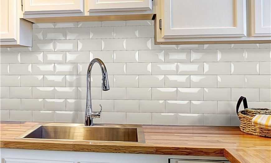 «Кабанчиком» или «метро» называют малоформатную белую плитку для кухни на фартук прямоугольной формы, пропорциями напоминающую глазурованный кирпичик со скошенными кромками по периметру, благодаря чему изделие выглядит объёмным.
