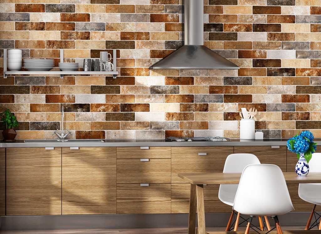 Такой вариант подойдет как для рустикального, так и для современного помещения. Варианты цвета «металлик» и «натуральный бетон», а также отделка в естественных тонах идеально подходят для минималистских и промышленных кухонь. Для интерьеров в этническом или деревенском стиле выбирайте белую плитку в сочетании со стильным декором в естественных и теплых тонах. Плитка ярких цветов, например, красного, возбудит аппетит и добавит пикантности.