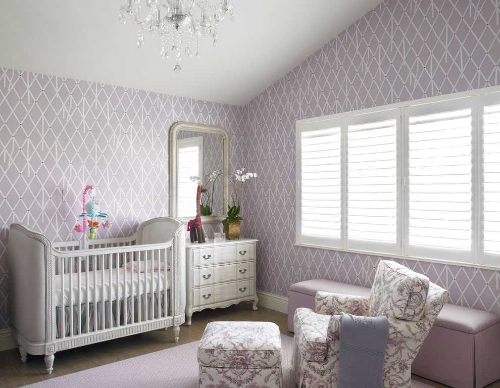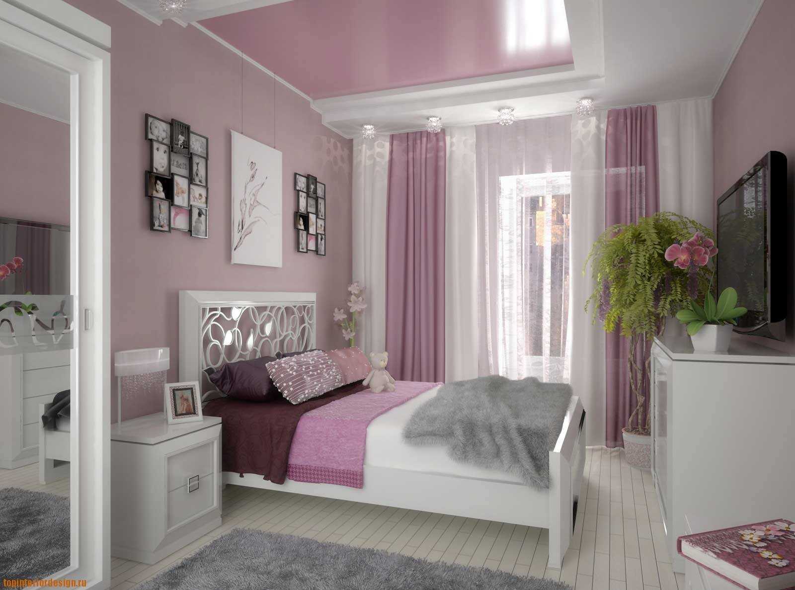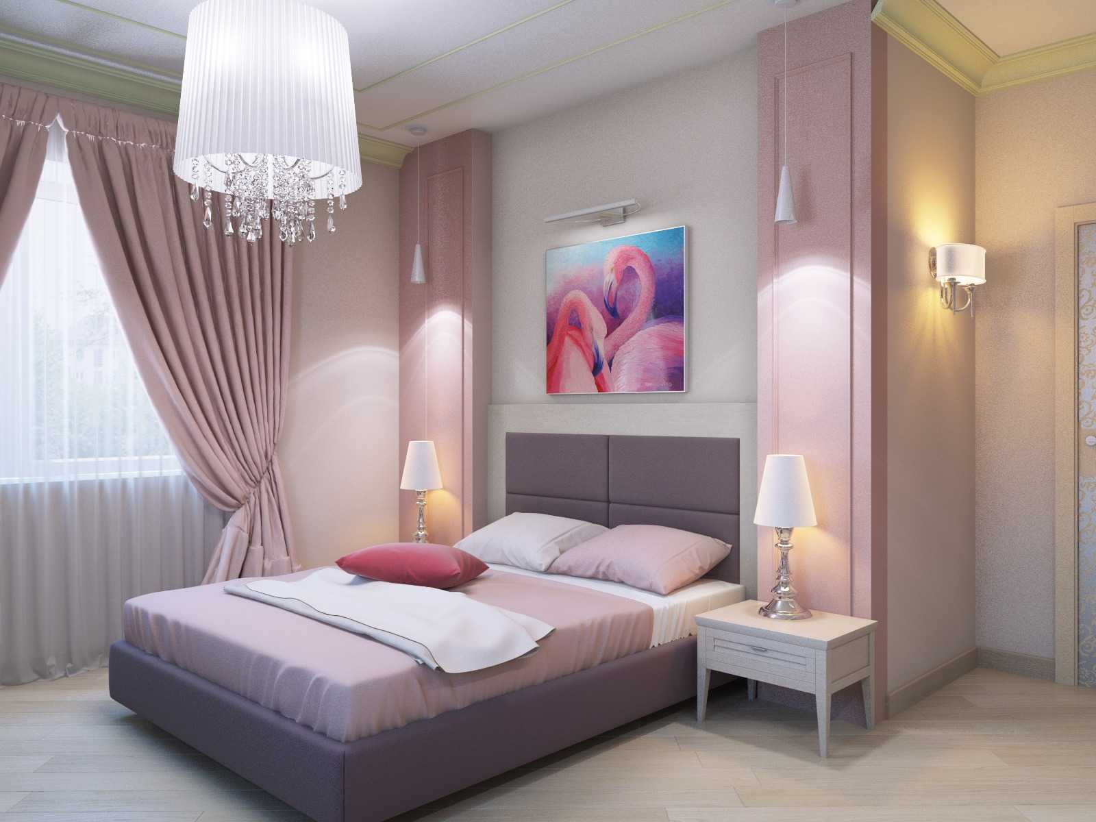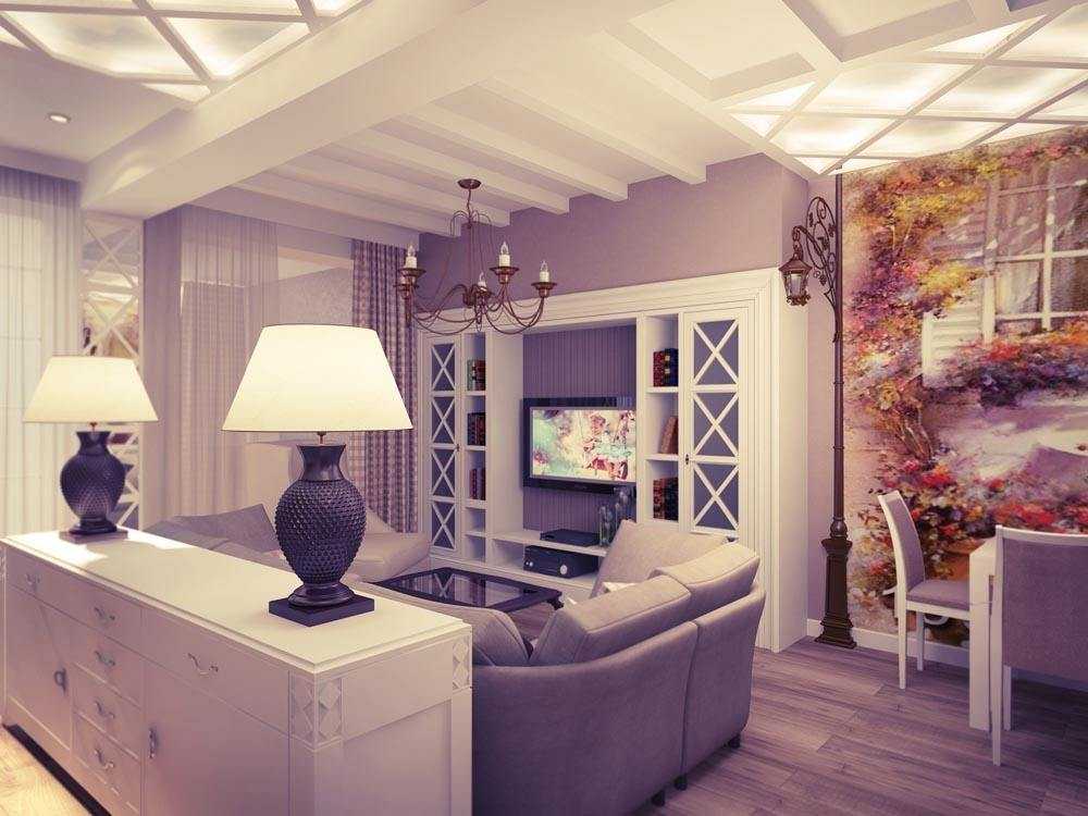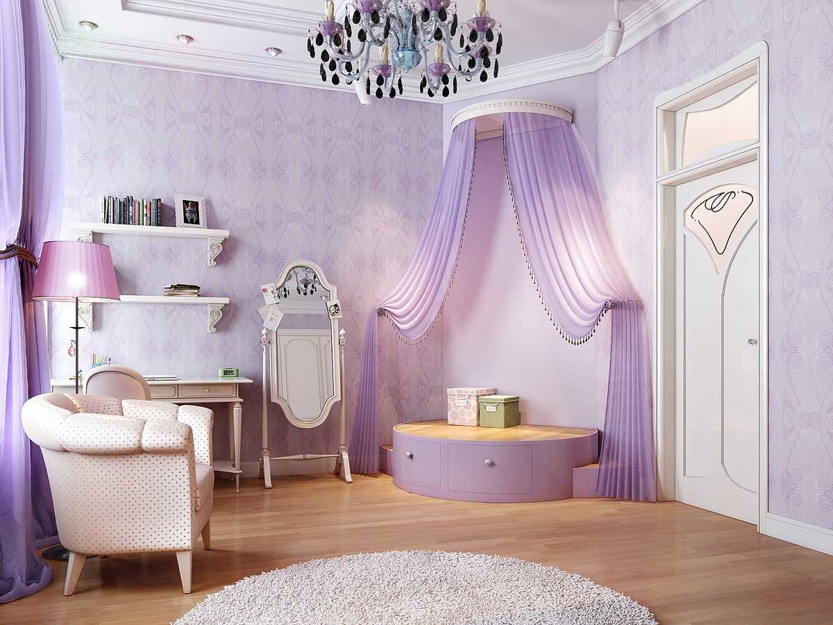 В интерьере спальни атмосфера романтического Прованса может представлять собой настенную роспись с мотивом лавандовых полей. Цветовая гамма интерьера — пастельно-сиреневая с теплым белым. Такое оформление привнесет романтичный, деликатный характер женскому пространству.