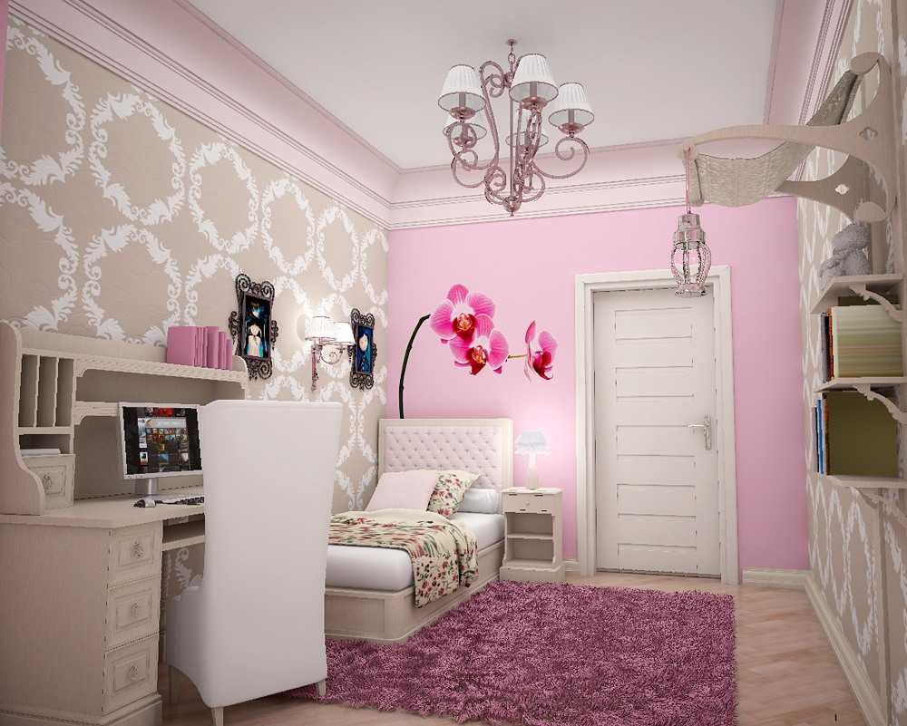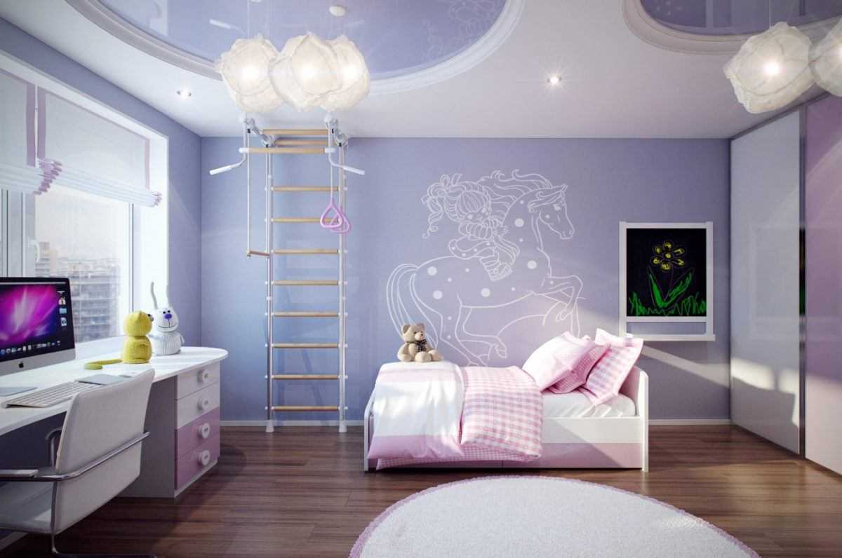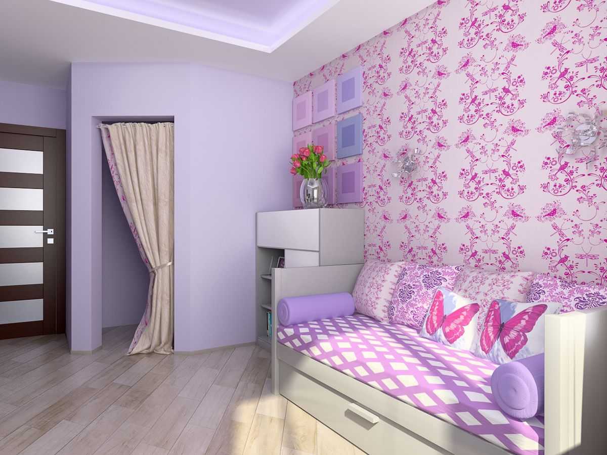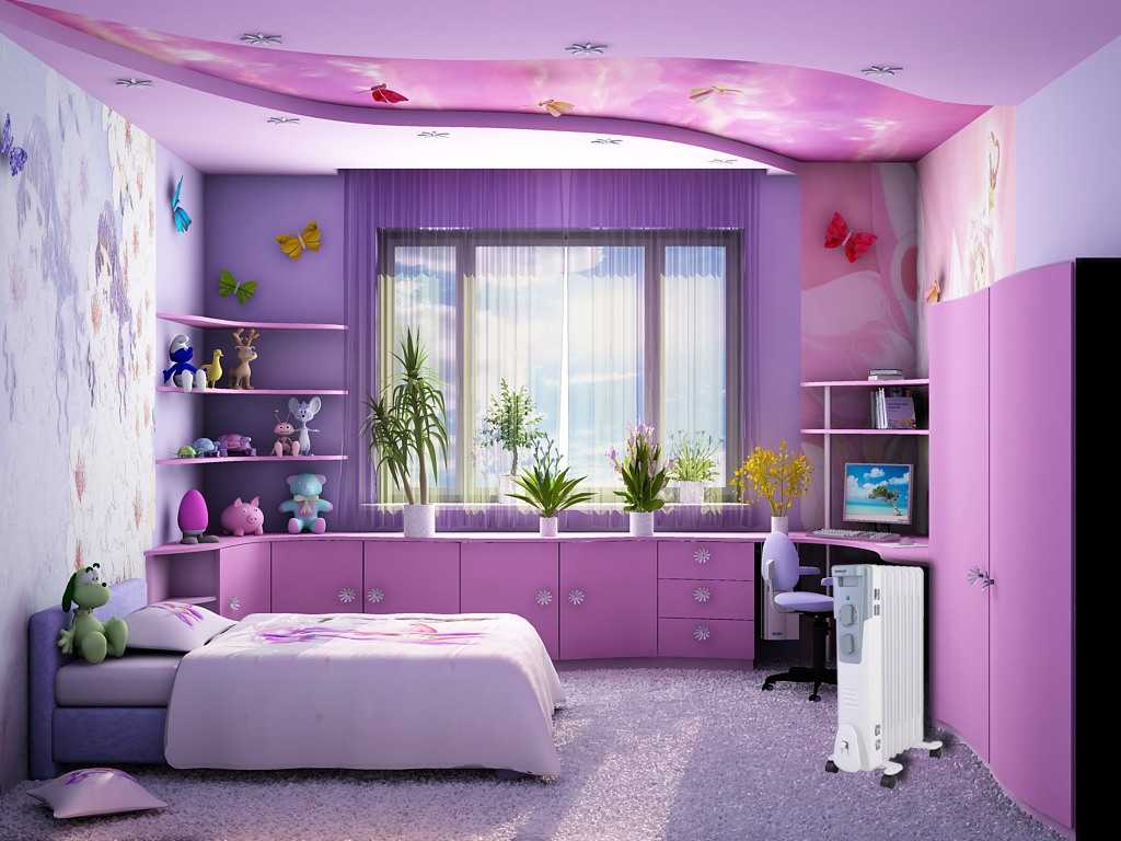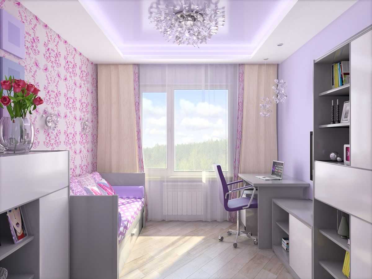 В интерьере спальни атмосфера романтического Прованса может представлять собой настенную роспись с мотивом лавандовых полей. Цветовая гамма интерьера — пастельно-сиреневая с теплым белым. Такое оформление привнесет романтичный, деликатный характер женскому пространству.