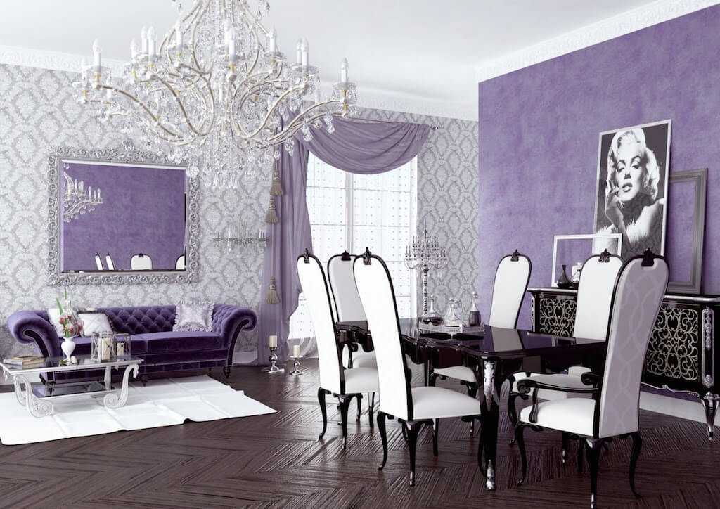 Фиолетовый цвет благодаря многообразию оттенков можно вписать практически в любой стиль. Мы рассмотрим наиболее различающиеся направления дизайна, чтобы доказать это.
