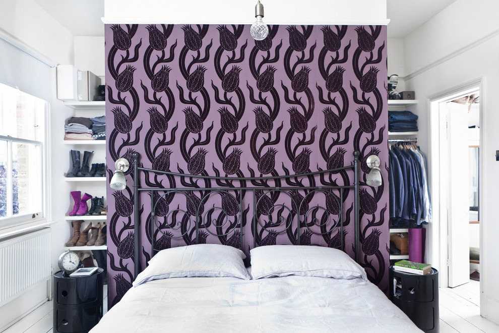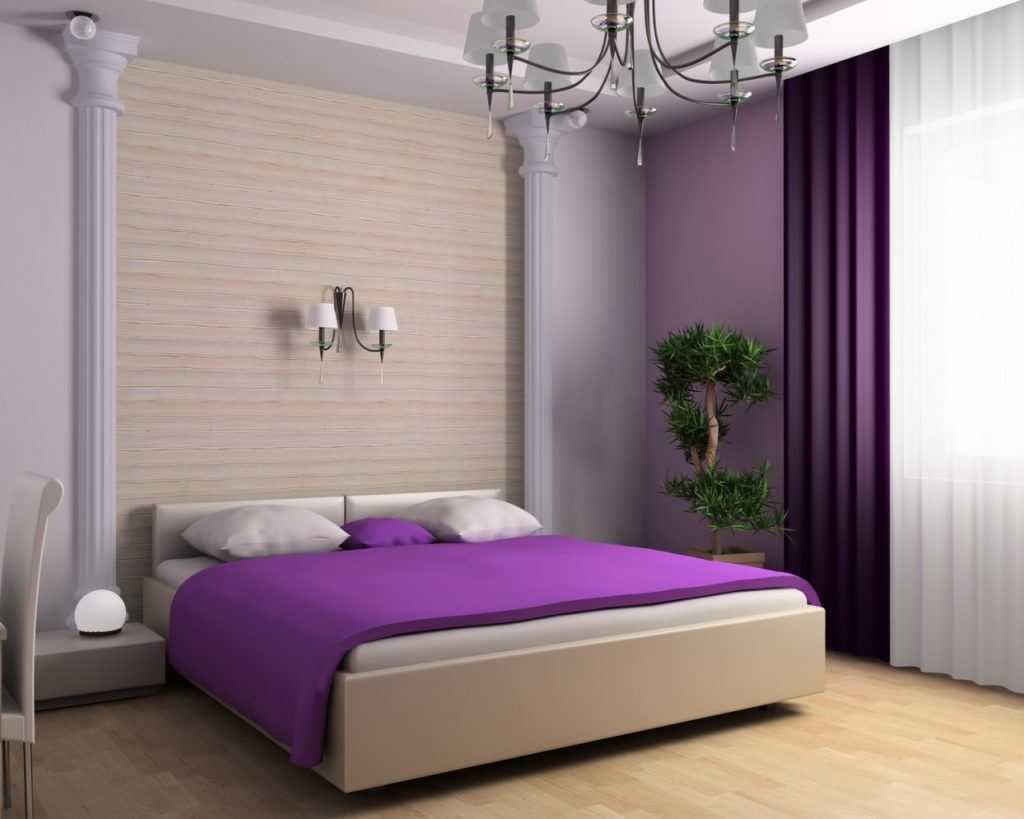 Важно не перегружать небольшую спальню чрезмерным использованием сиреневого цвета