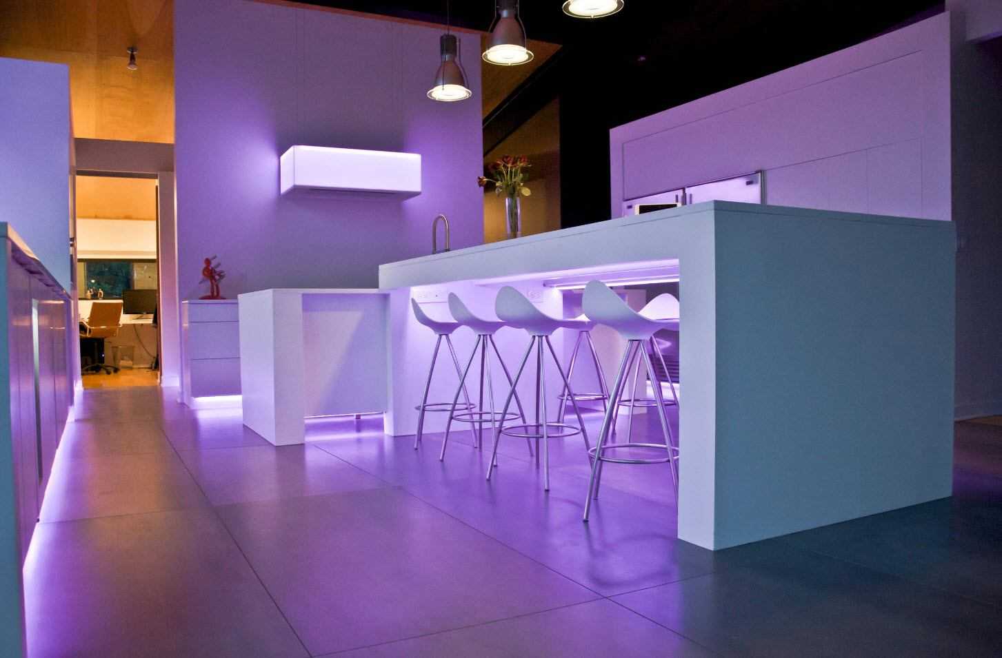 Насыщенный, интенсивный оттенок сиреневого, который переходит в синий цвет, был официально назван цветом 2018 года. Согласно названию Института Пантона, это цветовой номер 18-3838, который является ультрафиолетовым. В его значении есть немного мистических связей, а дизайн интерьера требует достаточной площади, чтобы создать красивую картинку. Посмотрите фото-галерею, как вы можете удачно оформить кухню в этом цвете.