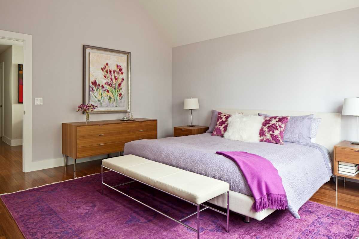 В зависимости от того, какой оттенок вы используете, нужно выбрать правильный цвет, который добавите в спальню. Шикарно смотрится пастельный пурпурный и розовый, но также приближенный к фиолетовому с белым или черным. В любом случае, сиреневый подходит для современных и стильных спален. Помните, что это достаточно сильный цвет. Если вы будете использовать его только в дополнениях, например, постельном белье, спальных принадлежностях, подушках или шторах, это также будет выглядеть эффектно и значительно
