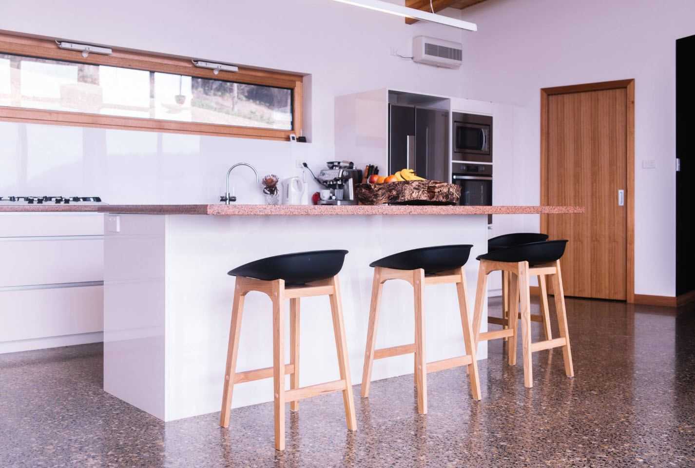 На окна вешают римские шторы или жалюзи, а ручки с фасадов убираются и заменяются современными технологиями вроде Push-to-open. Декор в минимальном количестве.