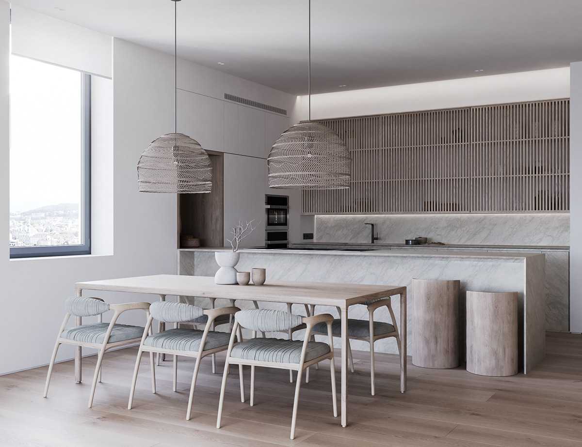 Эту тенденцию можно применить к нескольким поверхностям, например к плитке бежевого, коричневого или терракотового цвета. Вы также можете выбрать более темное дерево, а не светлое. Цель состоит в том, чтобы создать теплую и уютную атмосферу, комбинируя различные материалы и успокаивающие тона.