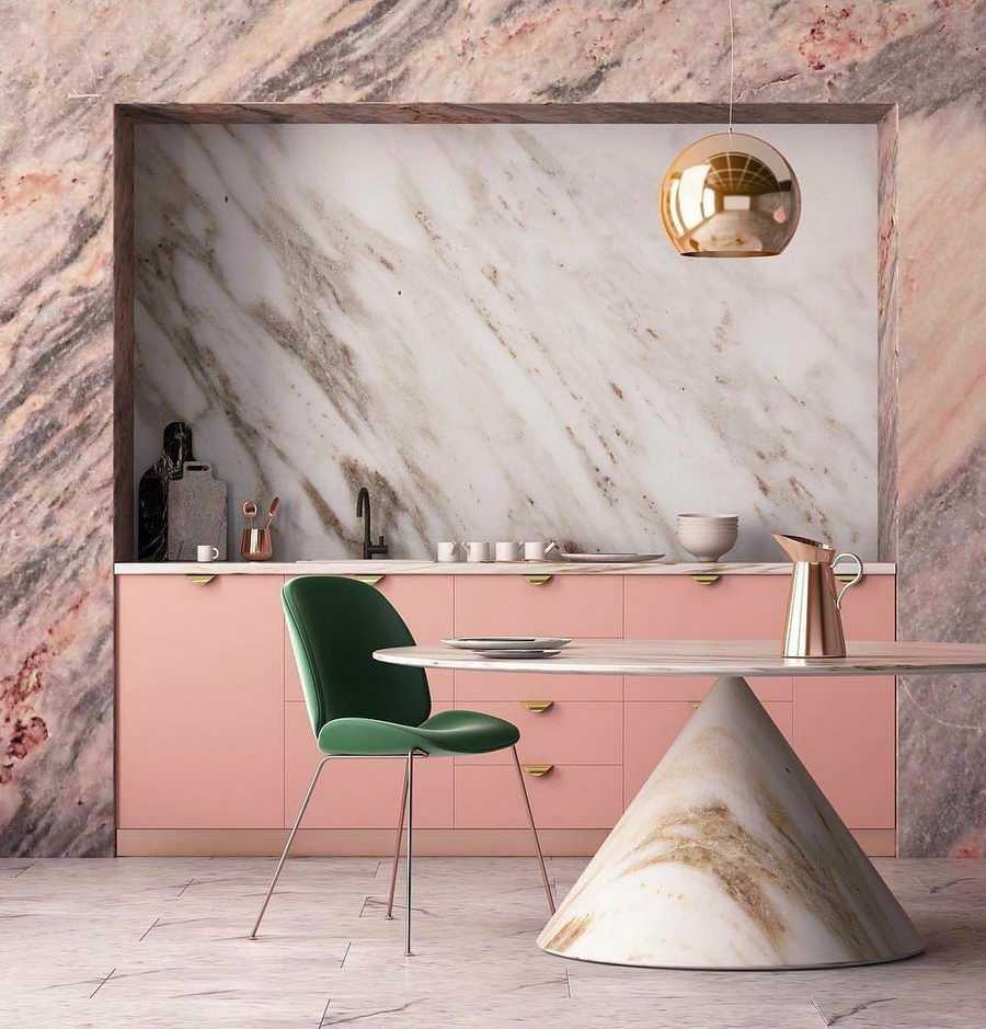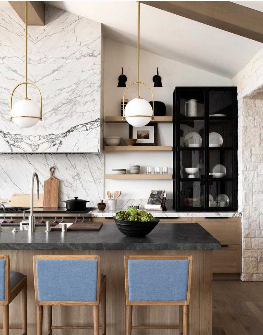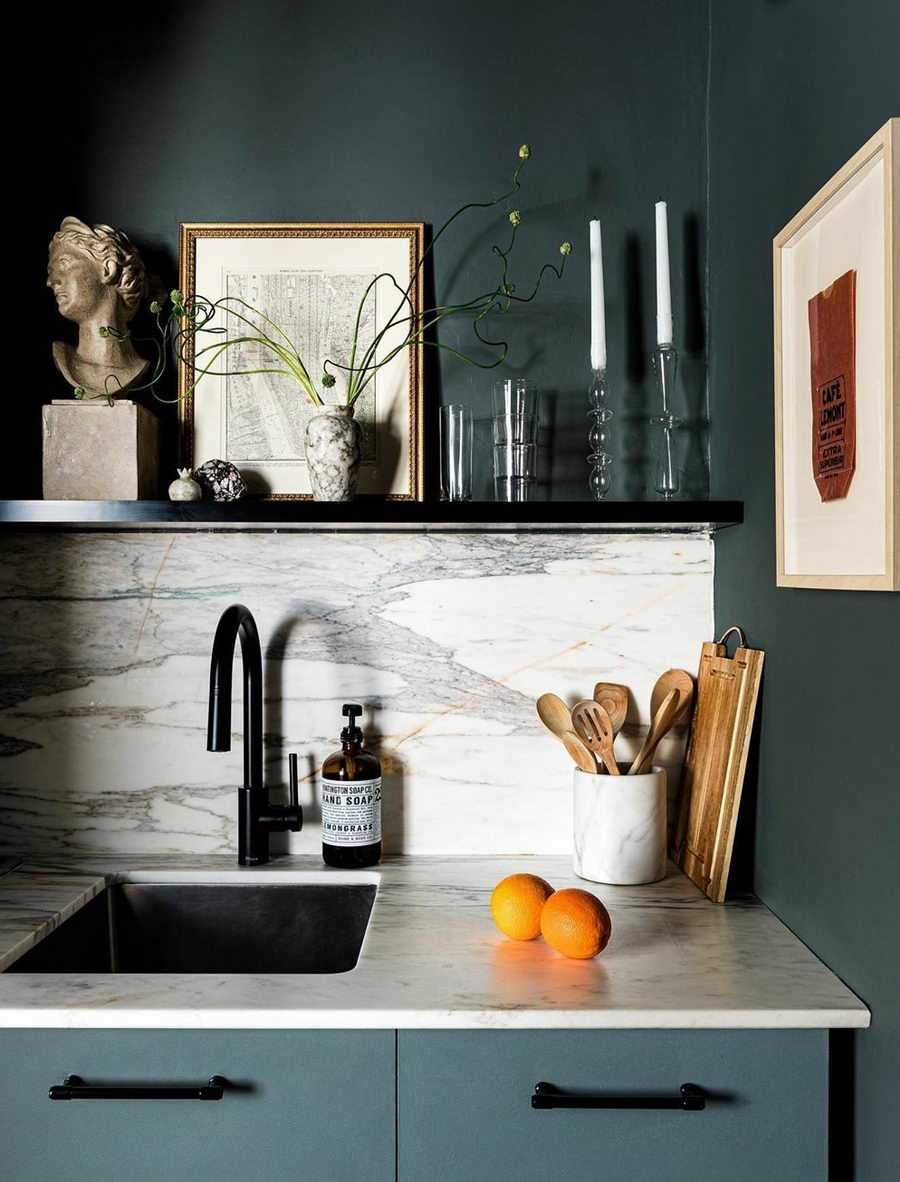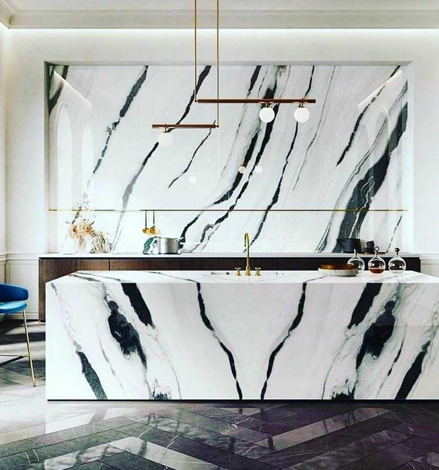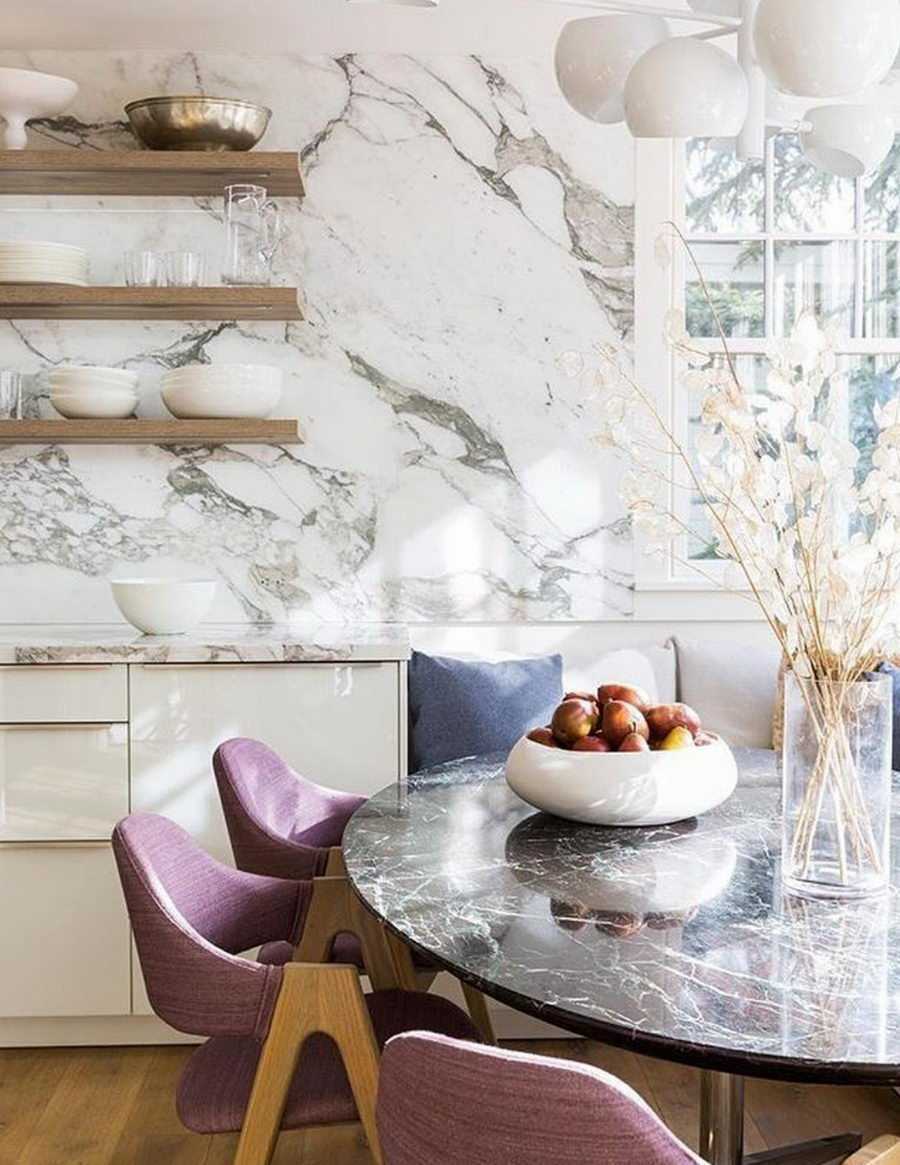 Актуальные дизайнерские решения 2019-2020 при оформлении интерьера с фартуком из мрамора