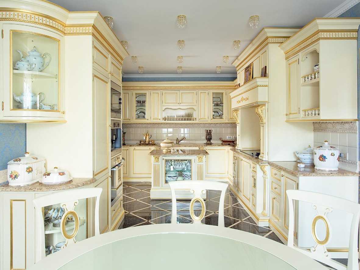 Эти 2 направления можно отнести к одной стилистической направленности. Позолота, орнаменты на дереве, помпезная мебель – все это присуще как рококо, так и барокко. Если обобщить, то красивое описание такой кухни – дворцовая, ведь обстановка при таком оформлении именно такая.