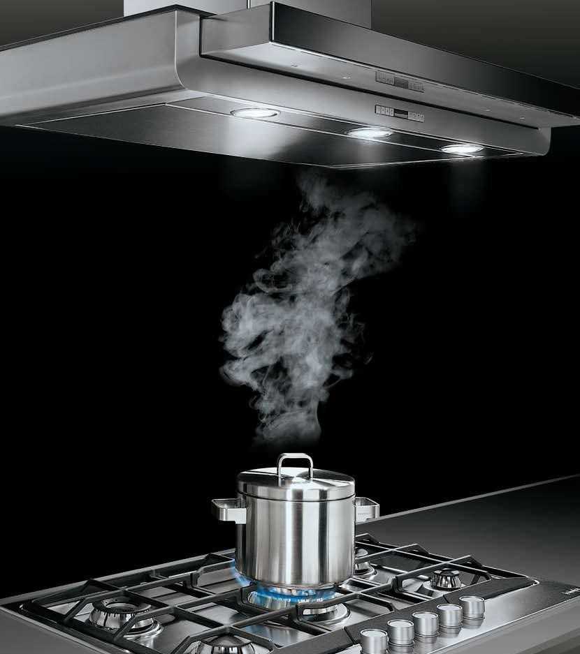 Это один из ключевых параметров, от которого зависит работоспособность прибора. Для правильного выбора можно использовать формулу расчета производительности: общую площадь кухни умножить на коэффициент обновления воздуха, равный 12.