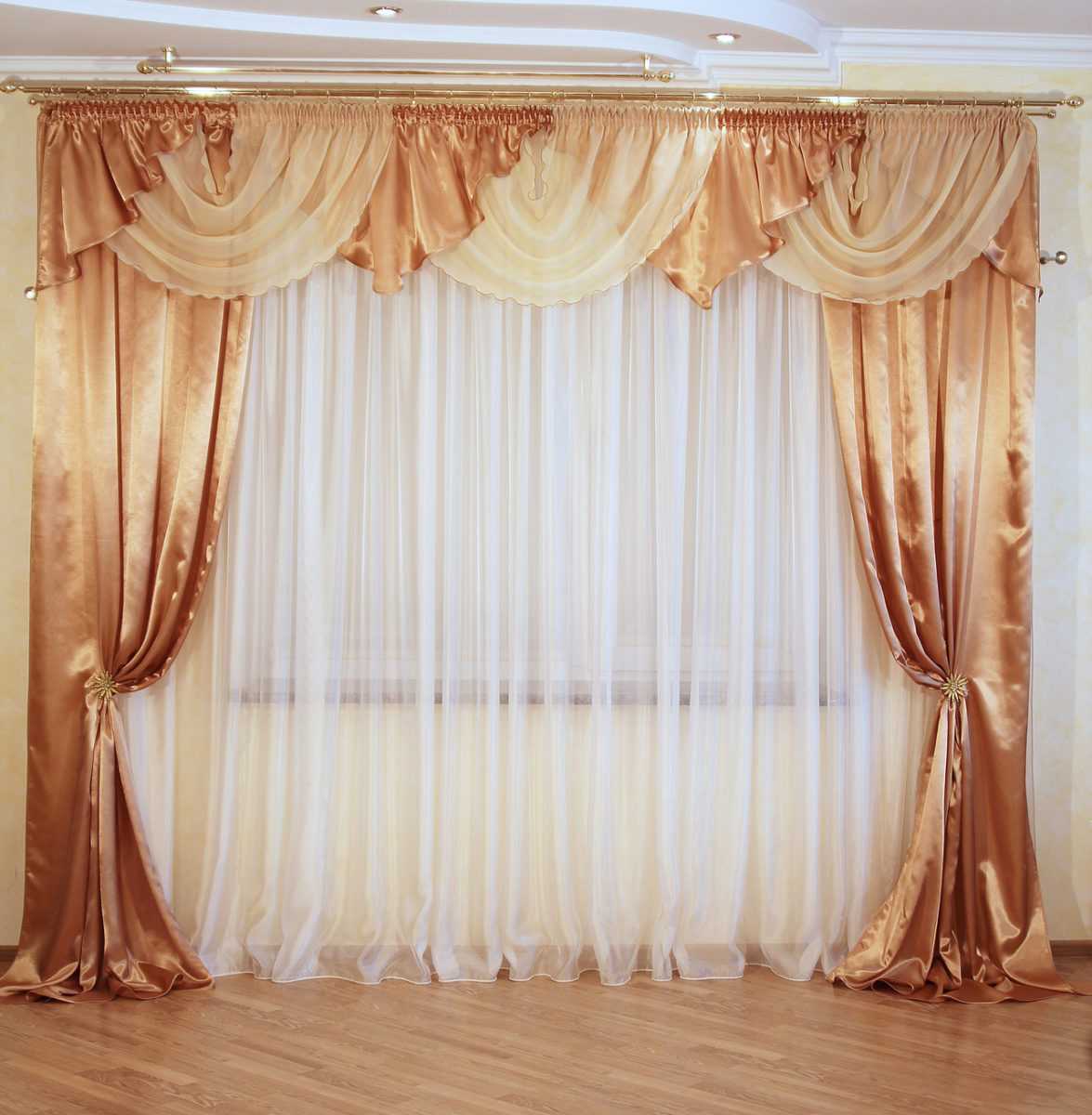 Классические модели до пола— это намек на богатство и изысканный вкус. Для штор используется дорогой материал, а вторым в наборе идет легкая органза или тюль.