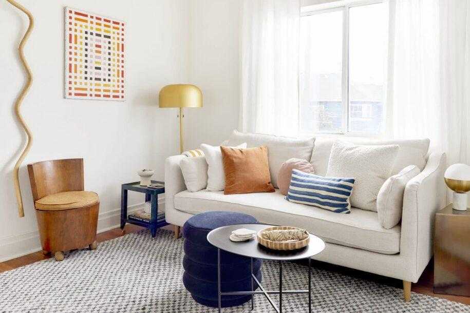Залитая солнечным светом гостиная, отделка которой практически полностью состоит из светлых оттенков, разбавлена яркими элементами декора и мебели. два-три глубоких, колоритных оттенка способны оживить комнату, добавив ей неожиданного позитива и благоприятной атмосферы.