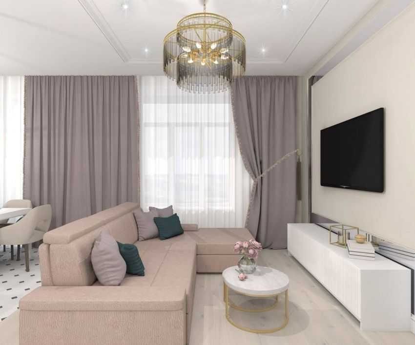 Возьми за основу белый и не слишком контрастные акценты: серые или бежевые. Не используй тяжелые многослойные шторы и объемные пушистые ковры на весь пол. Главное – не экономь на освещении, от которого напрямую зависит, как выглядит твоя гостиная.