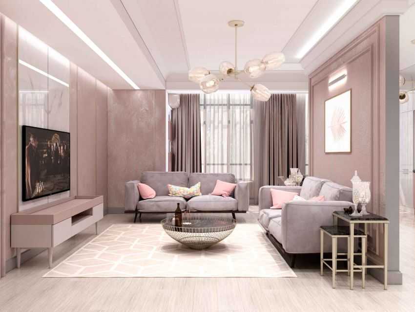 Светлая палитра цвета отличается сдержанностью, элегантностью и строгостью. В современных интерьерах уместно использование вариантов с металлическим блеском, в классических – с бархатистым эффектом. Ахроматические оттенки создают дизайн гостиной без эмоций. Чтобы помещение не выглядело унылым, нужны правильные переходы. Серый гармонично сочетается со всеми тонами, выступая в роли тени. Если комната маленькая, то в деталях лучше использовать светлые варианты (белый, бежевый).