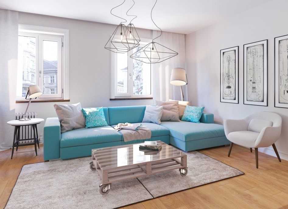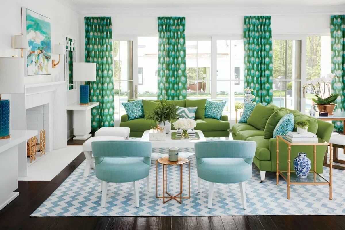 В современных интерьерах часто царят минимализм и сдержанная цветовая палитра. Тем не менее, вы можете видеть, что дизайнеры все чаще хотят добавить бирюзовые акценты в качестве модных акцентов. Посмотрите, как можно использовать данный цвет в современной гостиной.