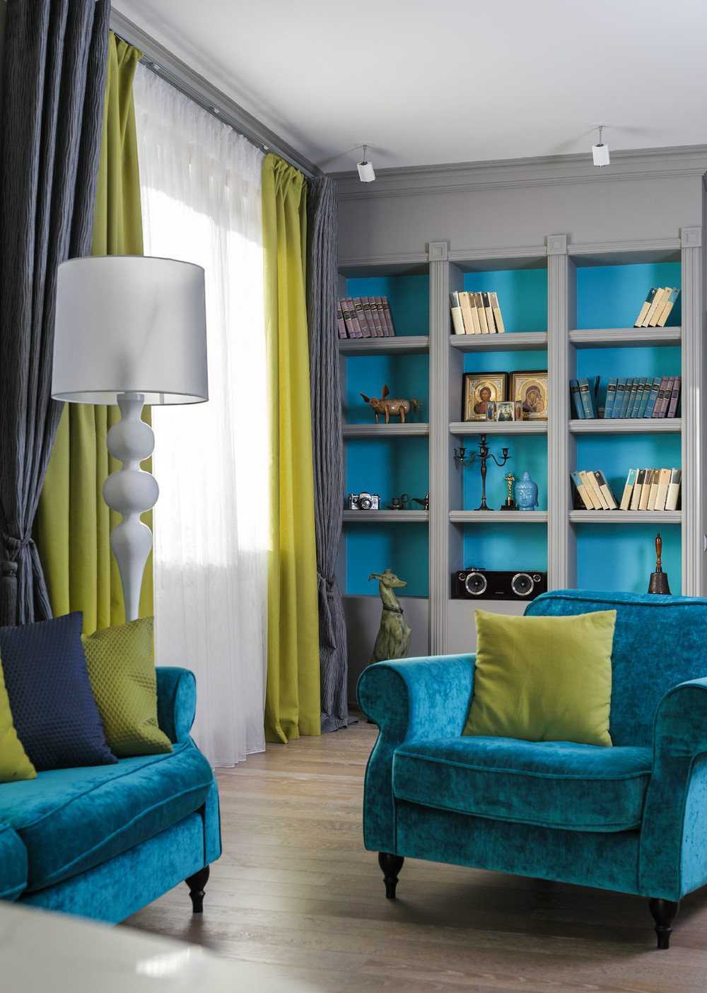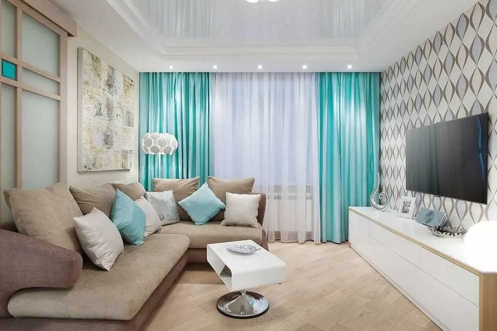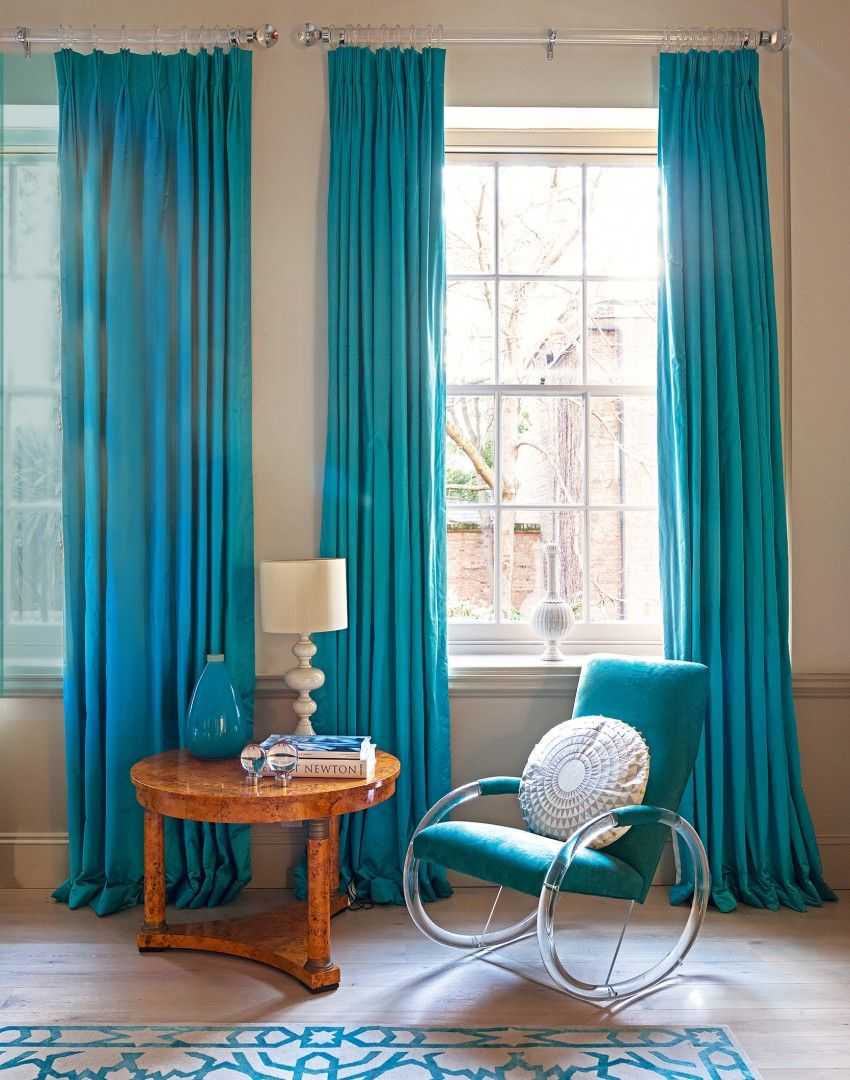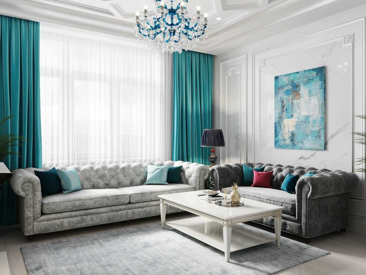 Шторы и прочие аксессуары в гостиную бирюзового цвета