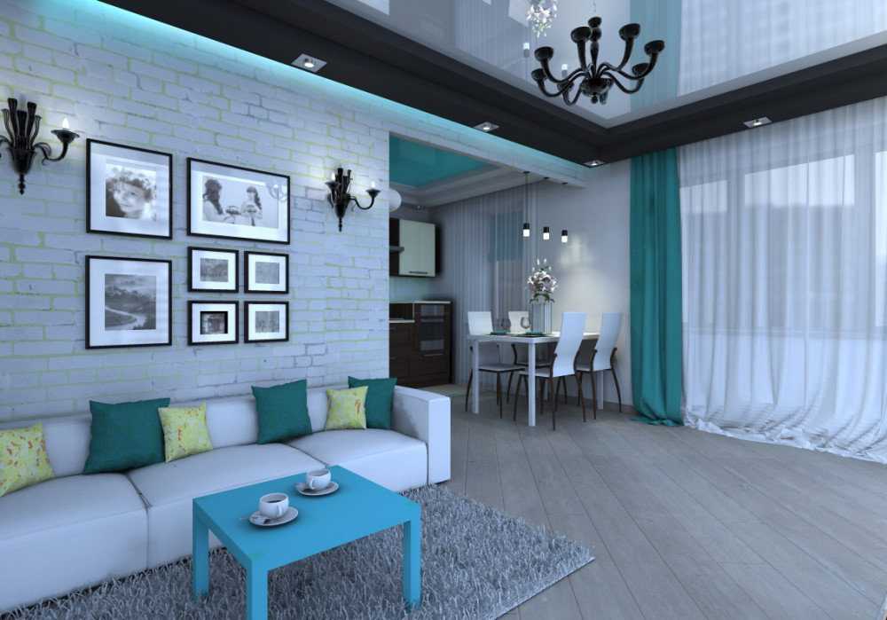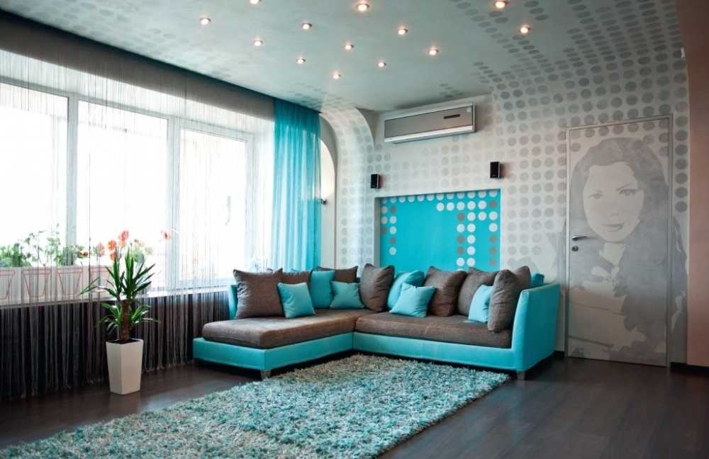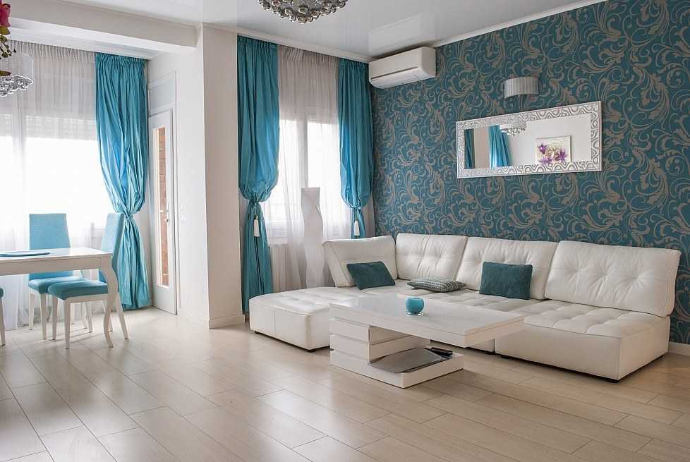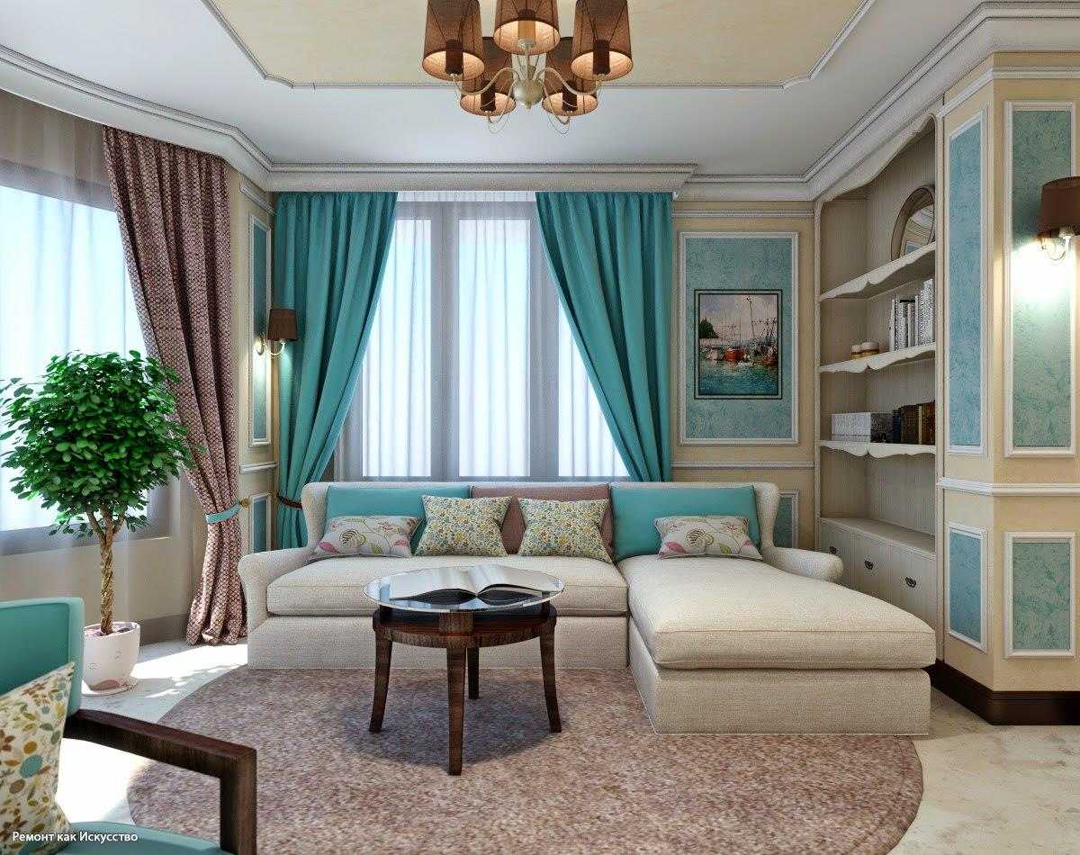 Шторы и прочие аксессуары в гостиную бирюзового цвета