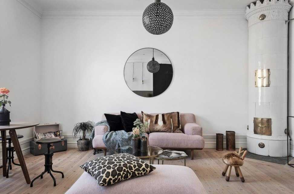 Правильное размещение расширит пространство, особенно малогабаритной гостиной. Также вам не придется загромождать комнату лишними декоративными элементами, поскольку отражение в зеркале будет наполнять пространство. От выбора формы зеркало визуально сменится восприятие пропорций комнаты, например, длинное зеркало создаст иллюзию высокого потолка, а круглое – расширит комнату.
