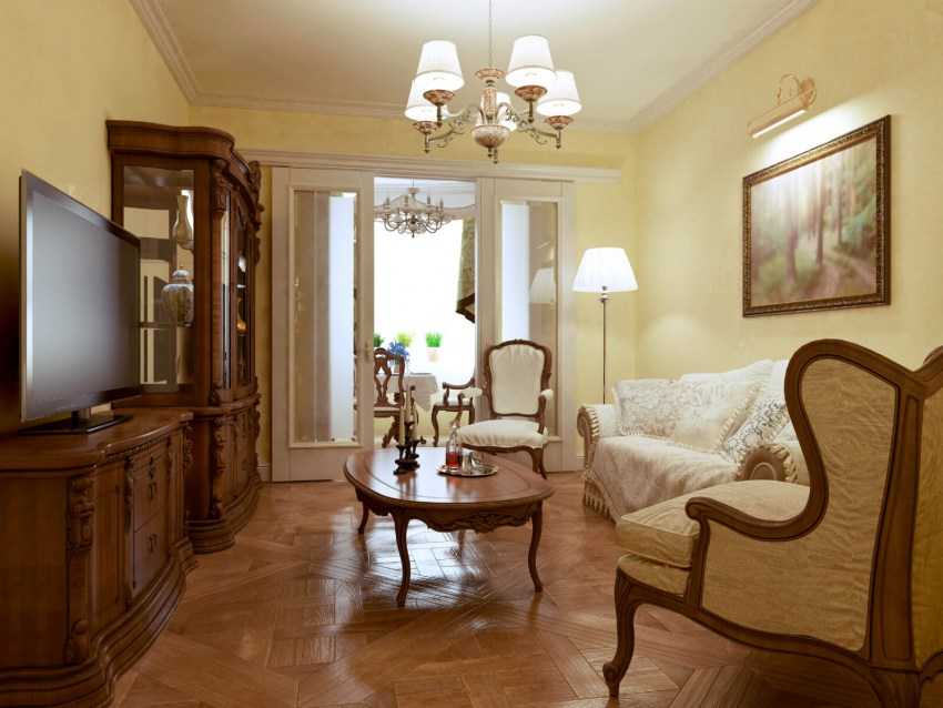 Галерея зеркал разобьет стену гостиной и уменьшит высоту помещения