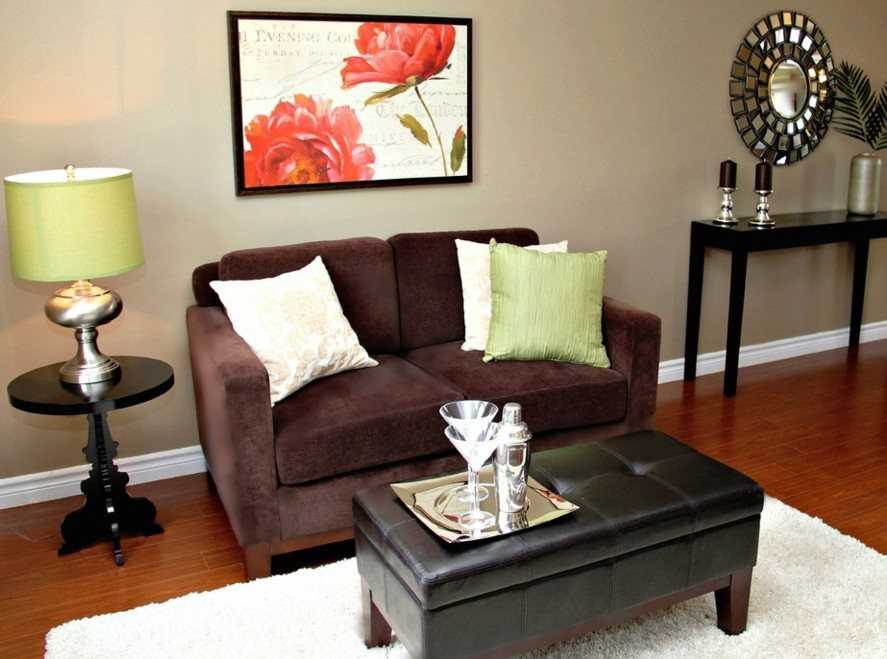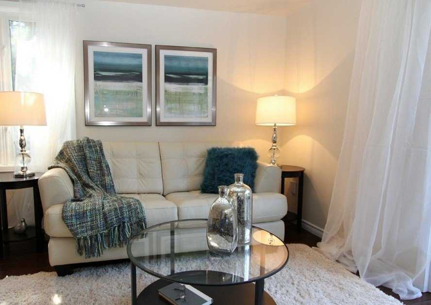 В маленьких квартирах, в которых площадь гостиных не превышает 15 метров, зал не должен иметь лишних предметов декора. Лучше не занавешивать стены картинами, фотографиями, поскольку эти детали перегружают интерьер. Необходимо подбирать только легкие и натуральные материалы для мебели и убранства окон.