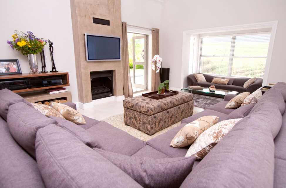 Гостиная комната с фиолетовой мебелью располагает к отдыху и наслаждению роскошью. В спокойные бежевые интерьеры впишутся мягкие сиреневые тона, для комнат с недостатком света подойдет яркий диван цвета фуксии на фоне белой стены или у окна. Стенка из темного натурального дерева будет гармонировать с диваном цвета фиалки.