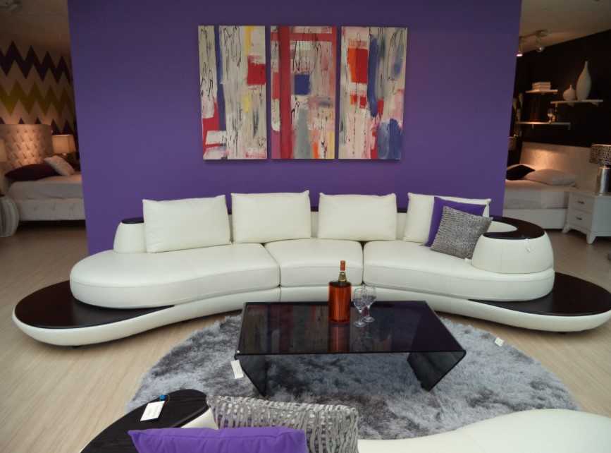 Лиловый, сиреневый или аметистовый диван не будет выглядеть нелепо в вашей гостиной, если вы сможете подобрать к нему подходящие, гармонично сочетающиеся тона и оттенки.