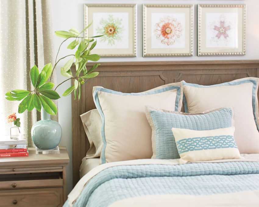 Кровать необходимо выбирать, основываясь на личный вкус. Она должна быть прочной, большой и удобной. Разместить ее можно в центре спальни или у одной из стен. Прикроватные тумбочки можно выбрать небольшие, а вот шкаф должен быть вместительным и функциональным.