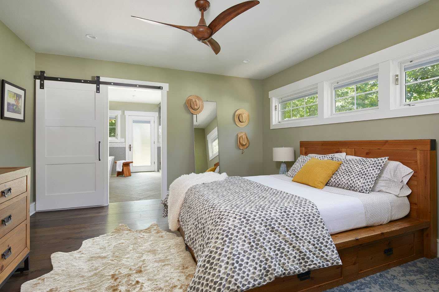 Поэтому для спальни стоит выбрать полноценное ложе, которое прячут от глаз с помощью простых приемов зонирования.