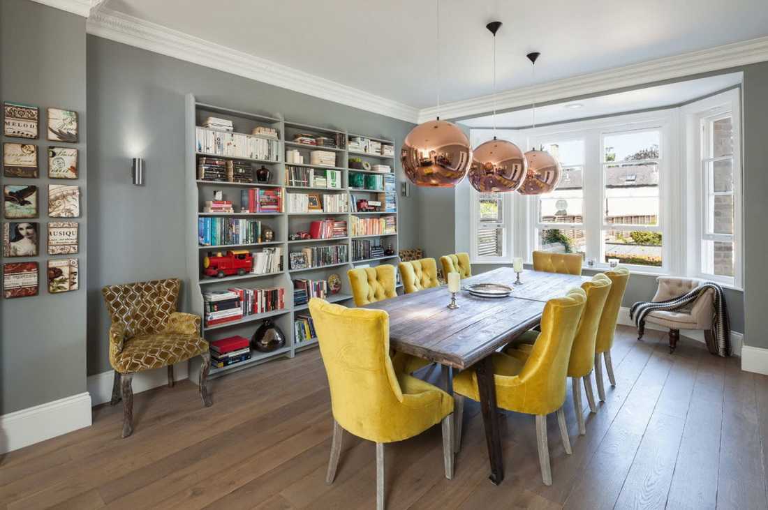 В зависимости от стиля интерьера, выбирают способ оформления эркерной области, например, для классического оформления подойдет идея организации столовой в застекленной нише. В таком случае в застекленном пространстве устанавливают обеденный стол на 6-8 персон и стулья, затем необходимо создать дополнительное освещение над столом и вариант гостиной с зоной столовой готов.