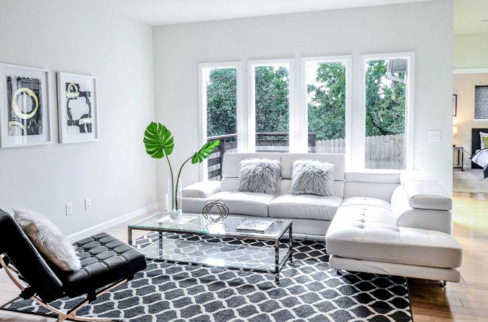 В свою очередь, белый — это универсальный и неподвластный времени цвет. Он будет подходящим лейтмотив для декора всего пространства, но и как фон для различных вариантов расположения.