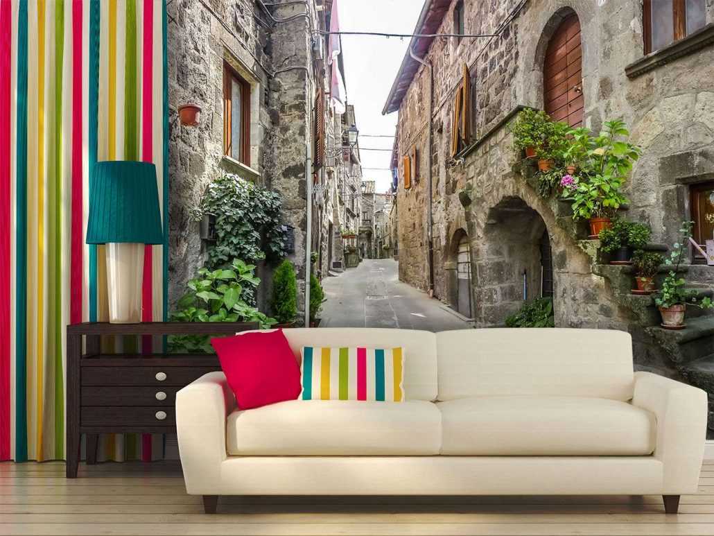 Обои в полоску для гостиной