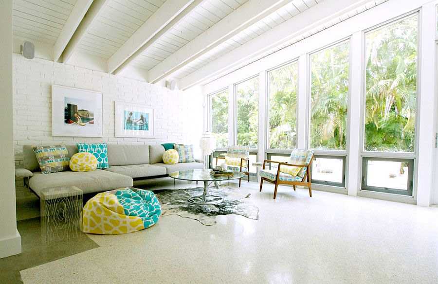 Для того чтобы интерьер не казался скучным важно использовать некоторые хитрости, например, принты, абстракции и геометрические рисунки. При отделке пола, потолка и стен важно выбирать материалы, способные корректировать форму помещения, делая его более просторным