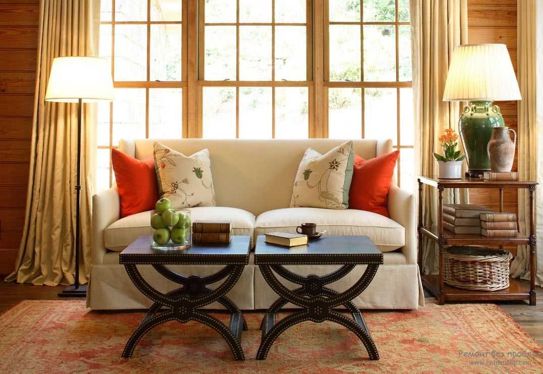 Очень эффектный прием, которым пользуются декораторы, основанный на принципе парности. Это могут быть как светильники, коврики или вазы, расположенные рядом, так и кофейные столики. При этом, они обязательно должны быть из одной коллекции или абсолютно одинаковыми. Этот прием способствует быстрой смене интерьера, а также, удобству, особенно, в малогабаритных гостиных (столики можно сдвинуть вплотную, чтобы образовалась большая поверхность для приема пришедших гостей), и эффектному внешнему виду.