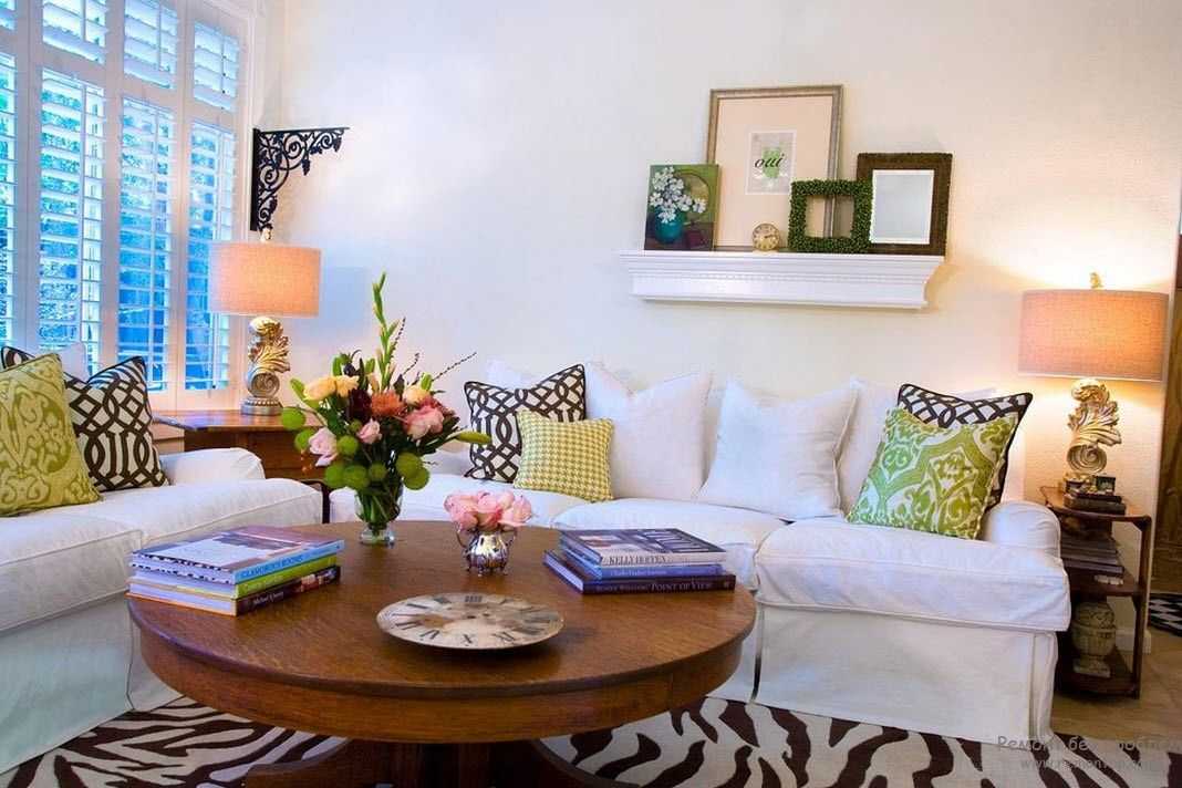 Функция его в гостиной сильно сопряжена с размерами квартиры. Для большого дома, где достаточно места для всего, столик используется по прямому назначению — для хранения газет, журналов, книг, пультов и прочих предметов, которые привычно держать под рукой. Если это большой столик, на нем размещают семейные фотографии в рамках, вазы с цветами, декоративные свечи и подсвечники и другие предметы декора.