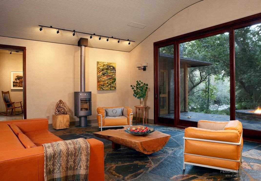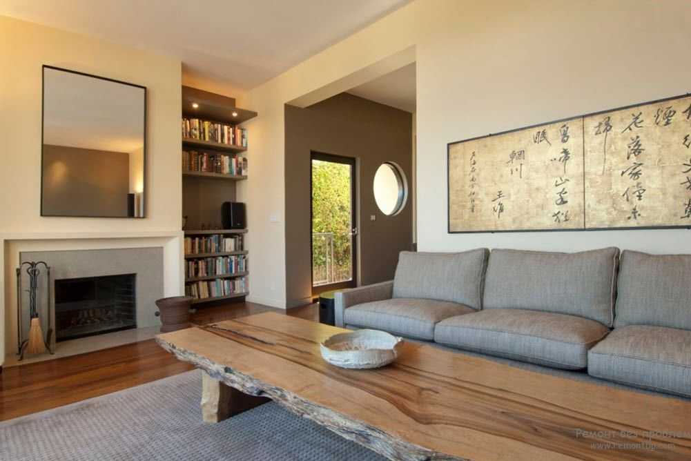 Всегда свежо в современной гостиной выглядят аксессуары и мебель со шлифованными и неровными поверхностями