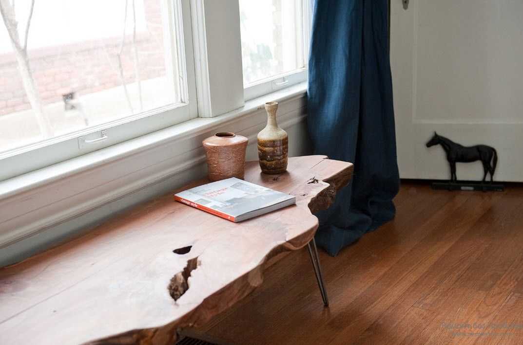 «Сырые» деревянные доски — хороший материал для столика, декорирующего гостиную в скандинавском стиле