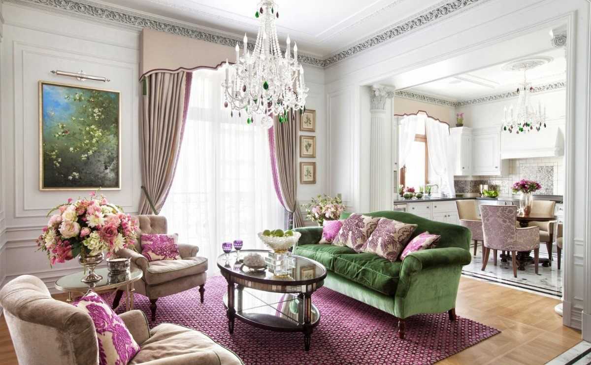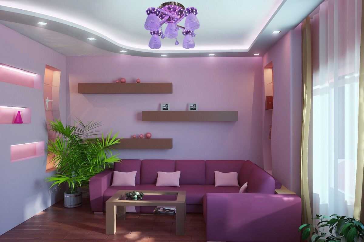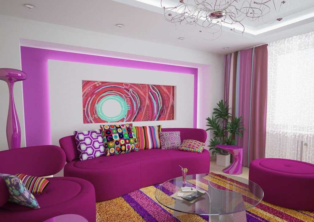Особенности сиреневого цвета в интерьере гостиной