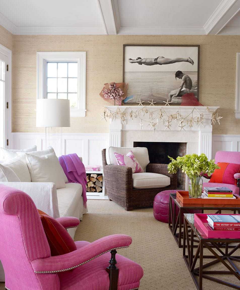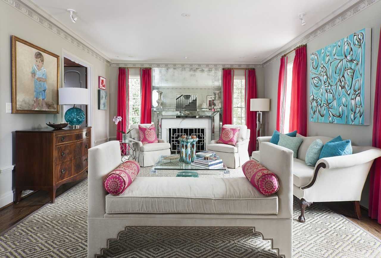 Нежно-розовый привносит атмосферу спокойствия и романтические нотки в интерьер гостиной. Более сильные оттенки фуксии, в свою очередь, добавляют динамику и выразительность дизайну. Многочисленные интерьеры из богатой фото-коллекции позволят вам подобрать дизайн гостиной под любой стиль и композицию.