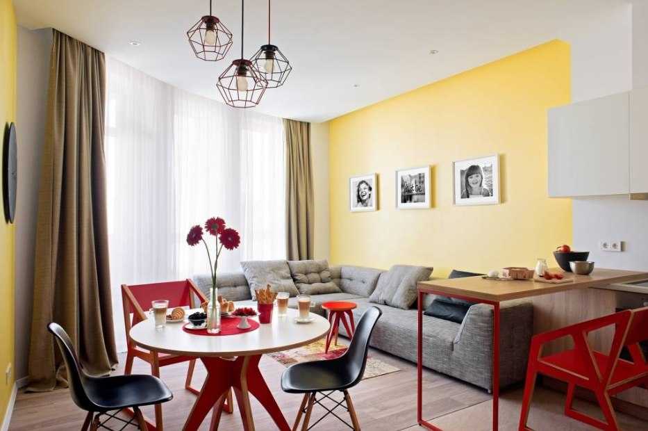 К примеру, желтый или оранжевый оттенок очень хорошо смотрится с красным цветом. Считается, что такая комбинация способна усилить активность и улучшить настроение. Поэтому эмоциональный фон в такой комнате всегда будет хорошим. Но при условии оптимального количества использования данных оттенков.