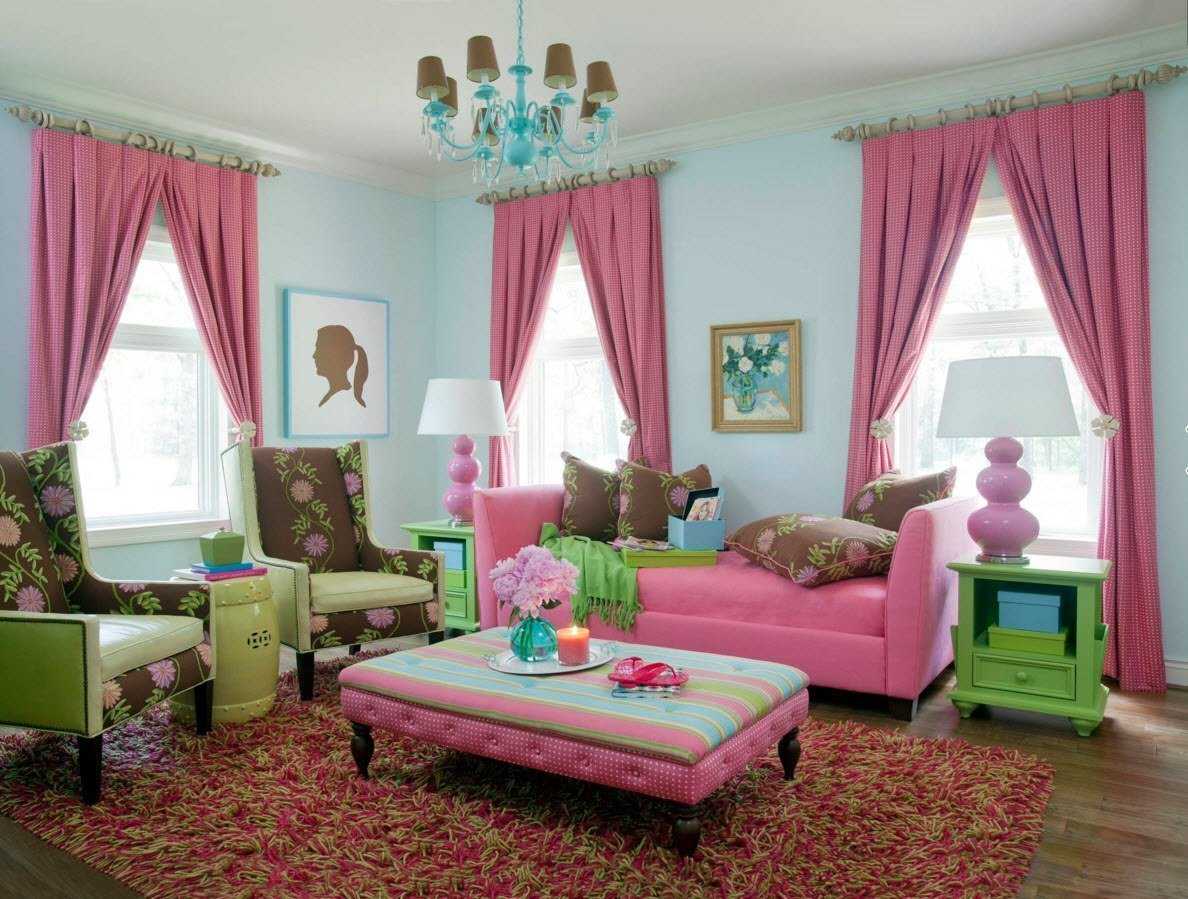 До недавнего времени розовый ассоциировался прежде всего с китчем. Однако сегодня можно говорить о настоящей розовой революции. Этот цвет покорил сердца дизайнеров интерьера практически со всего мира. И правильно! Сегодня розовый связан прежде всего со сладостями, деликатесом и изяществом. Розовые шторы будут отлично смотреться в сочетании с цветовой классикой: белый, серый и черный. Вы можете пойти еще дальше и сочетать цвет с шоколадно-коричневым или оригинальным гранатом. Помните, что палитра оттенков розового цвета очень богата — начиная от тонкого порошка, заканчивая насыщенной фуксией и малиной, а также интенсивным неоном.