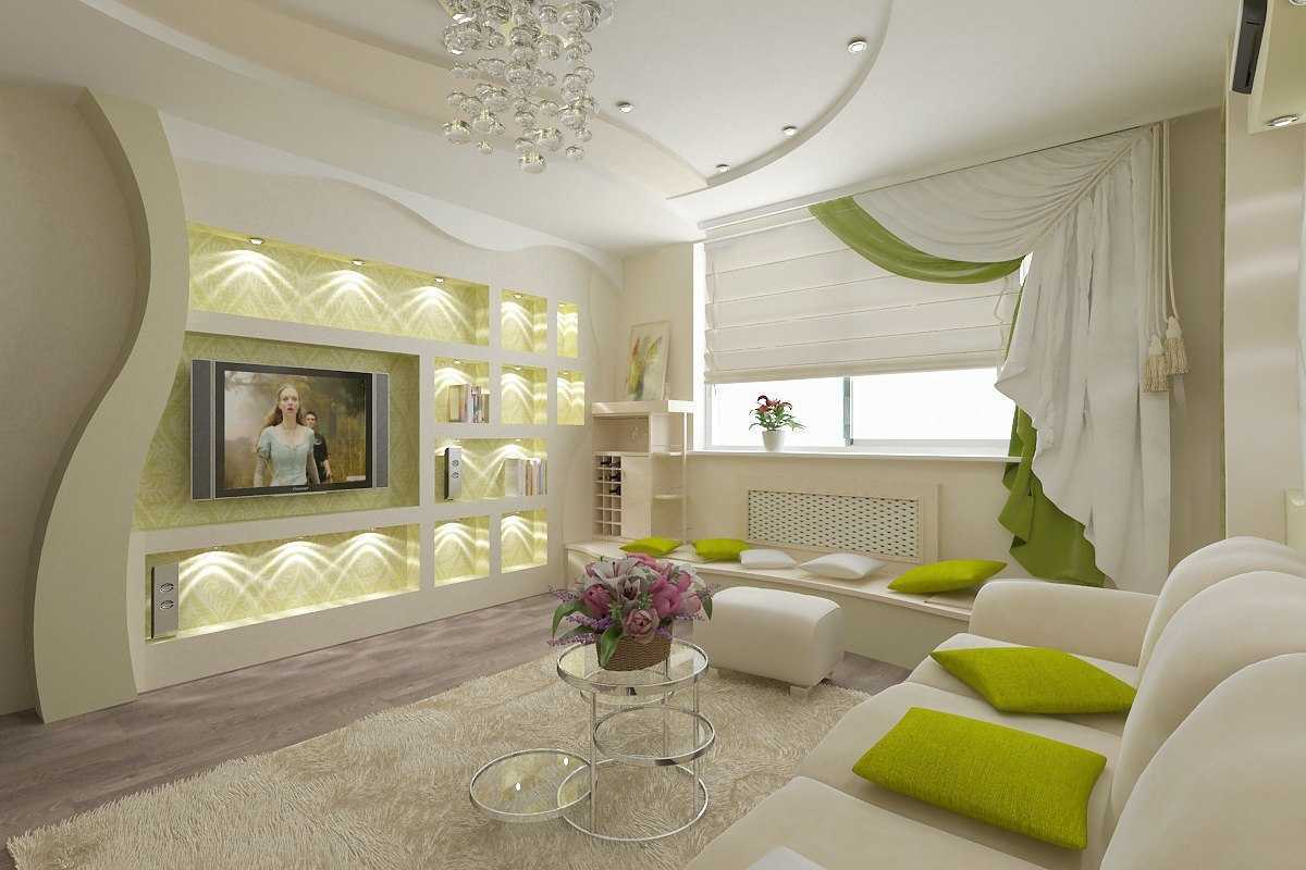 Белый также заслуживает особого внимания, так как он будет не только соответствовать всем акцентам, представленным в зале, но и создаст в комнате ощущение чистоты, свежести и простора. Следует помнить, что потолок должен быть ярче, чем стены. Это решение позволит избежать эффекта подавления и опускания помещения.