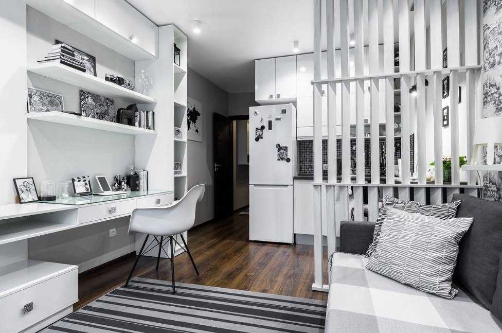 Зал небольшого размера допустимо отделывать также в духе минимализма. Размещайте только исключительно нужные вещи, откажитесь от малейших украшений, ставьте мебель в компактном исполнении и максимально современную бытовую технику – больше ничего для соблюдения концепции не потребуется. Интерьер чаще всего делают монотонным, и лишь изредка добавляют второй цвет к доминирующей окраске.