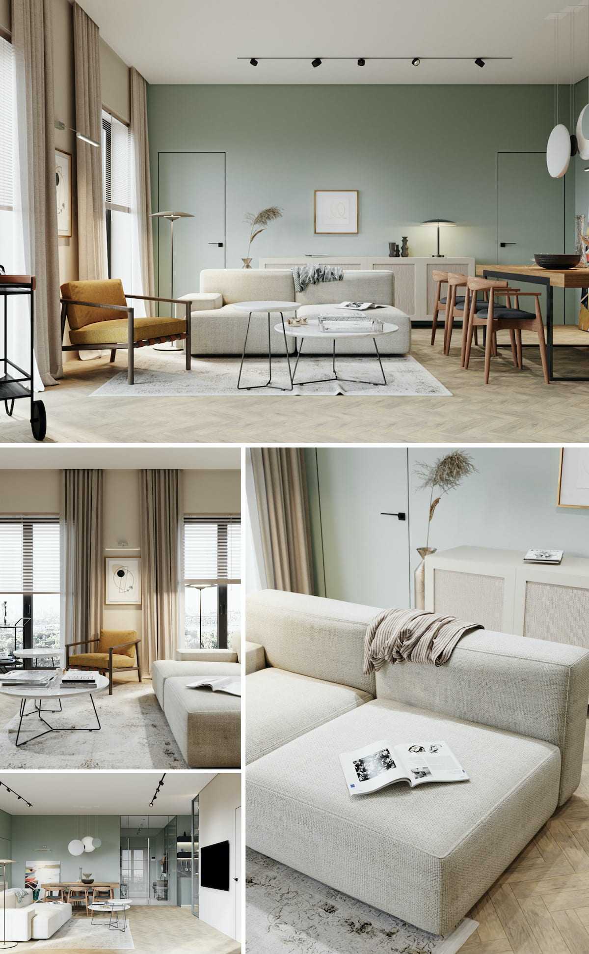 Акцентируйте внимание на какой-либо группе предметов, к примеру, на диване или журнальном столике.
