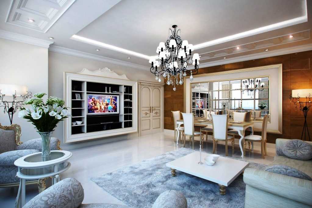 Минимальное количество мебели. Классика не предполагает использование громоздких стен, стеллажей, шкафов.