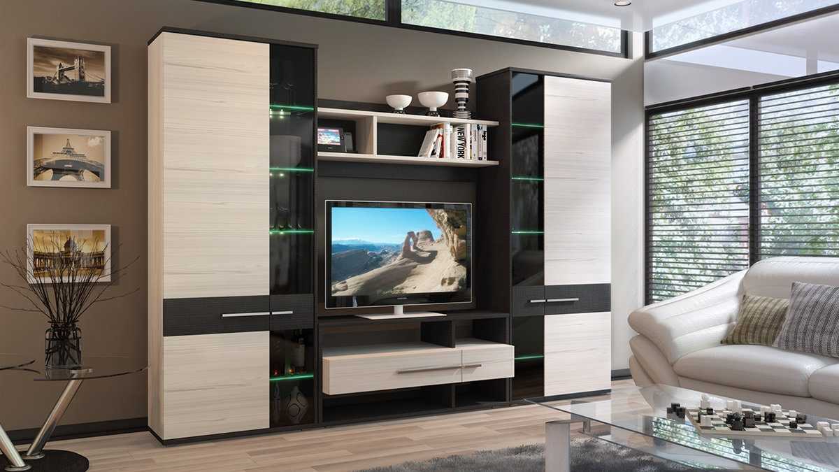 Современная корпусная мебель для гостиной не декорирована, ее очарование заключено в простоте. Единственным украшением является блеск. Здесь нет места для броского декора, лепнины, антиквариата, пушистых ковриков или кружева. Современная мебель для гостиной впечатляет своей формой и пропорциями. Здесь четко вырисовывается последовательность — простота видна в каждом элементе.