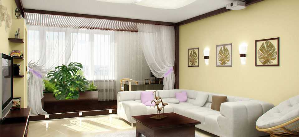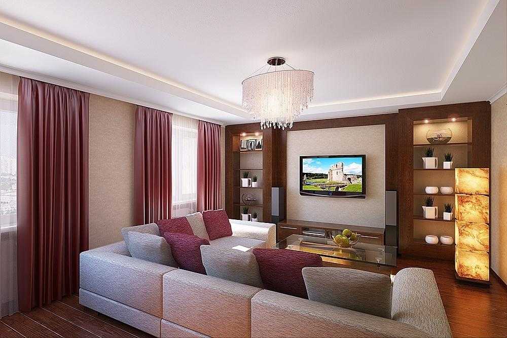 Разобравшись с зонированием, можно продумывать дизайн интерьера такой гостиной. Варианты: