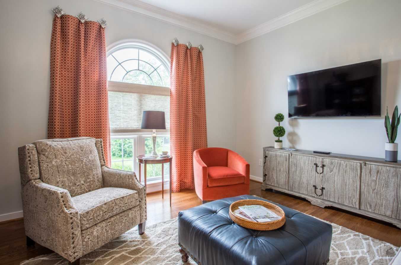 Интерьер маленькой гостиной невозможно представить без занавесок с декоративными подвязками.