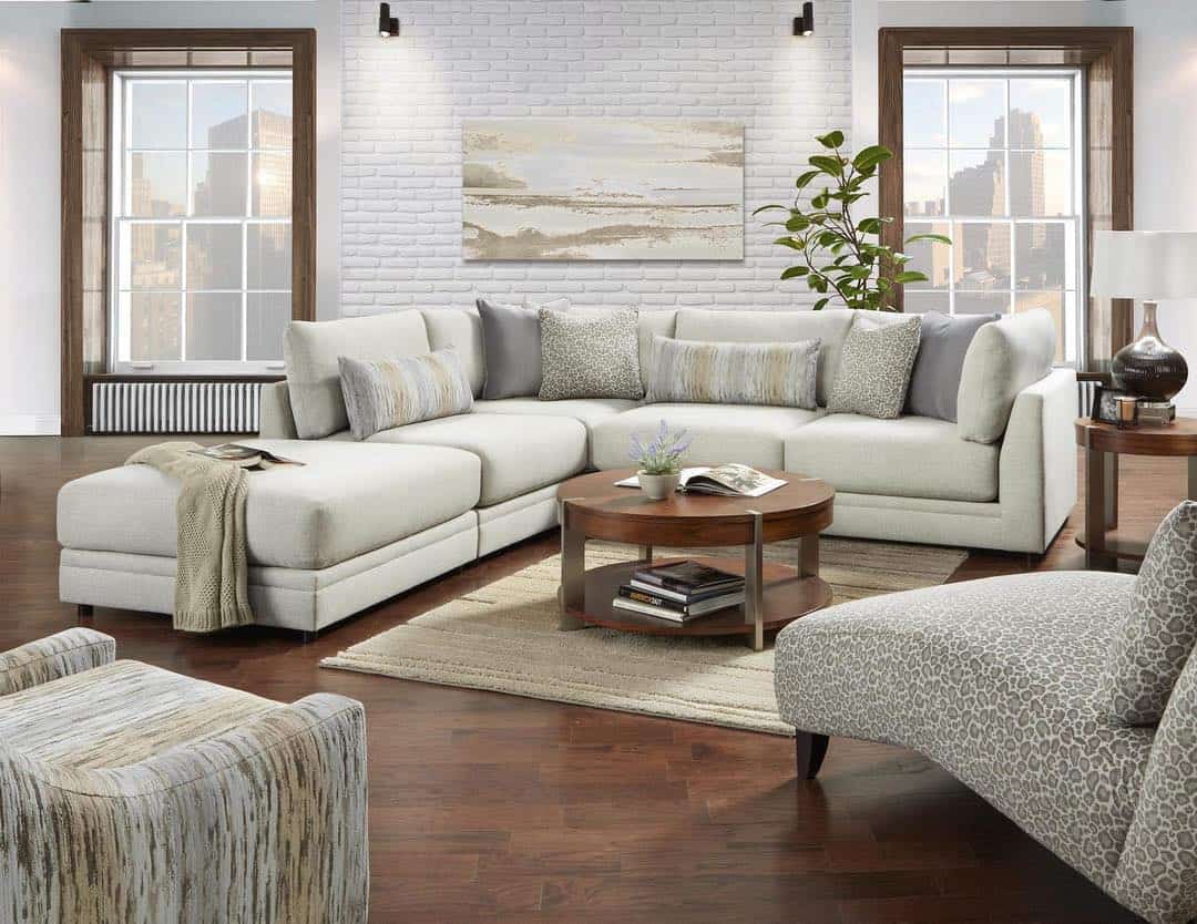 Последние годы дизайнеры отдавали предпочтение светлым тонам, предпочитая в оформлении гостиной белые и серые оттенки. Новинки гостиных 2020 года рекомендуется оформлять с использованием смелых и дерзких цветовых решений.